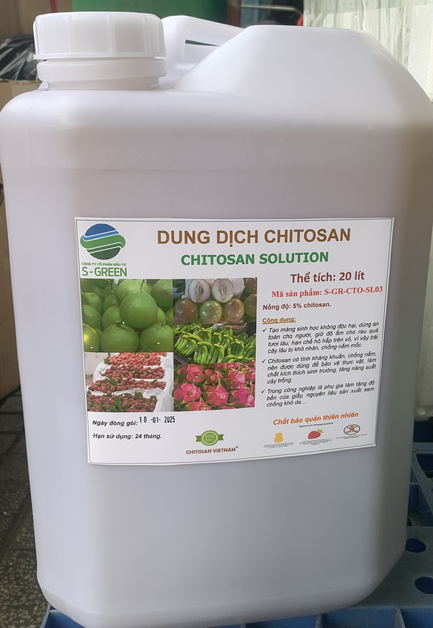 - Pha 1 lit dung dịch chitosan 5% với 5 - 7 lit nước (tùy từng loại trái cây và rau quả) - khuấy đều. Pha càng ít nước thì lớp màng Chitosan càng dày.
